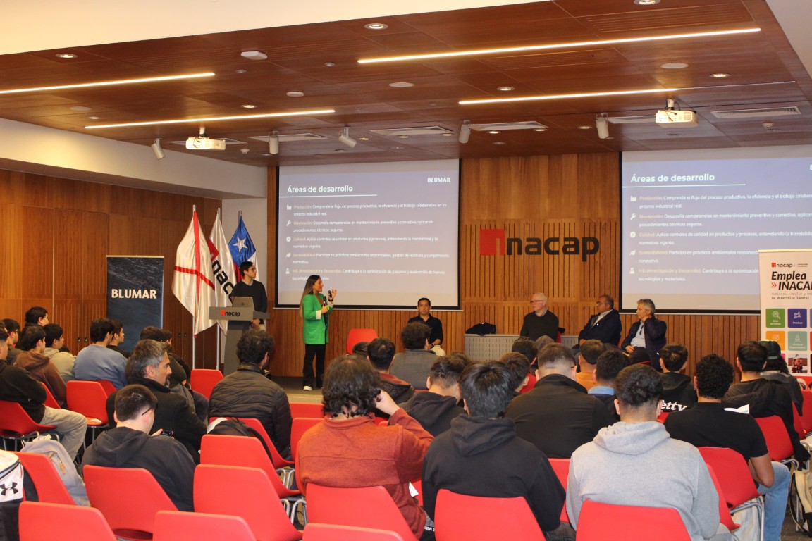 La compañía realizó una jornada inaugural junto a más de 70 estudiantes de Inacap Valdivia, con el objetivo de mostrarles el campo laboral que pueden encontrar en Blumar, acercarlos a la industria pesquera y acuícola, y fortalecer la vinculación con el mundo académico.