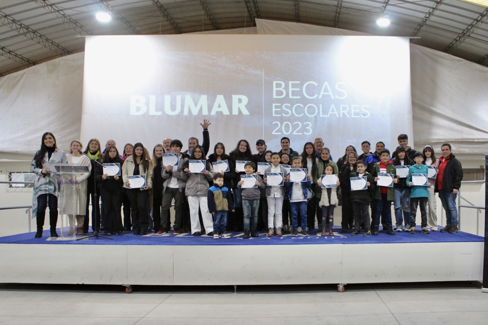 Talcahuano, 3 de julio de 2023. La compañía pesquera y salmonera Blumar premió nuevamente el esfuerzo de 41 estudiantes que son hijos de los colaboradores de la empresa, en el marco de la entrega de Becas 2023. Los alumnos fueron reconocidos por su desempeño académico y se encuentran cursando desde enseñanza básica hasta universitaria.