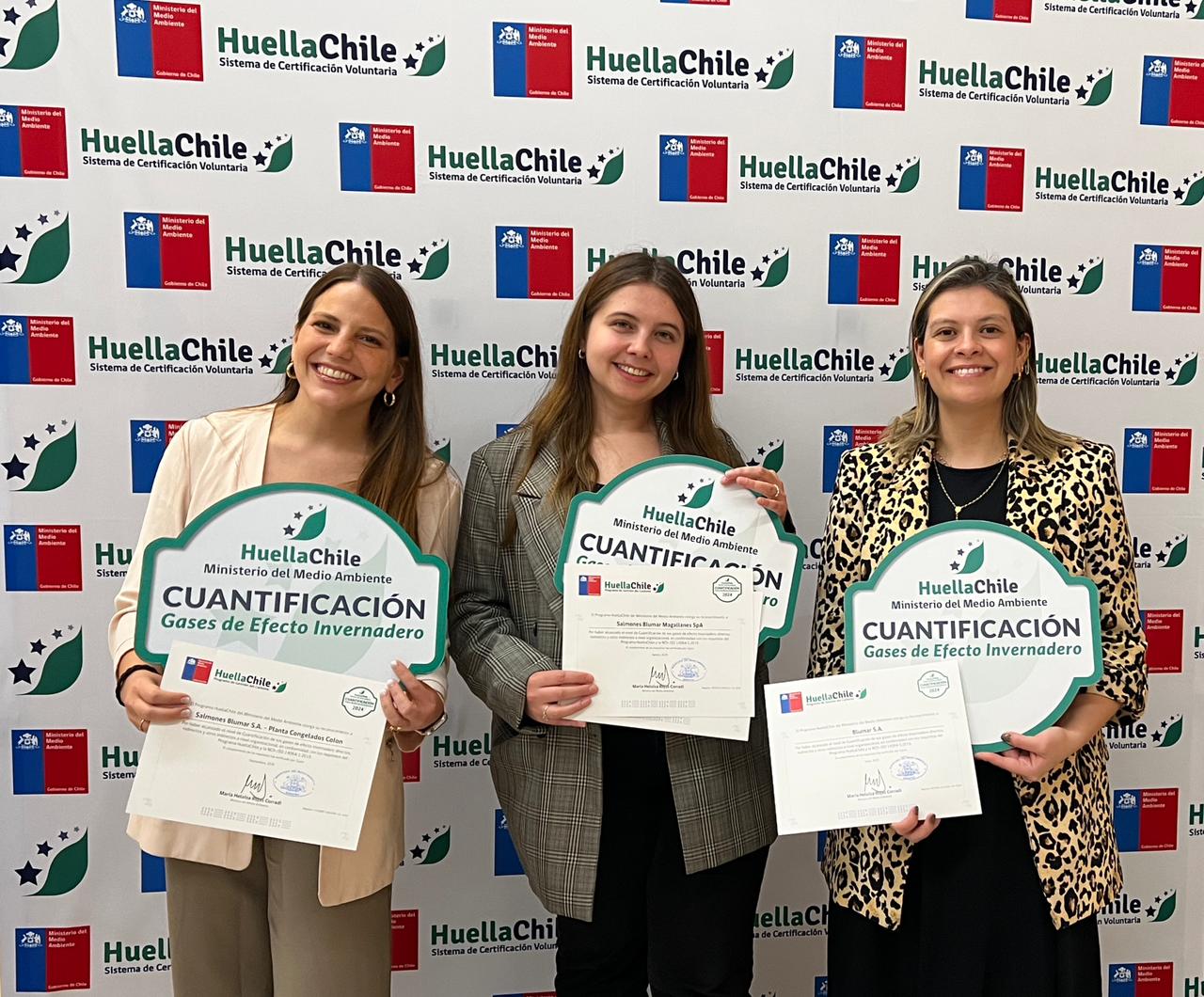 14 de octubre de 2025. En el marco del Programa Nacional de Gestión del Carbono HuellaChile, impulsado por el Ministerio del Medio Ambiente, Blumar y sus filiales Salmones Blumar S.A., Salmones Blumar Magallanes SpA y Pesquera Bahía Caldera S.A. fueron reconocidas por su compromiso con la medición, gestión y reducción de sus emisiones de gases de efecto invernadero (GEI).