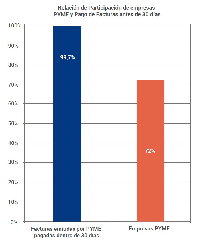 En Blumar S.A. el porcentaje de facturas de proveedores Pyme que fueron pagadas dentro de los 30 días corridos siguientes a su recepción fue de 99,7 %.