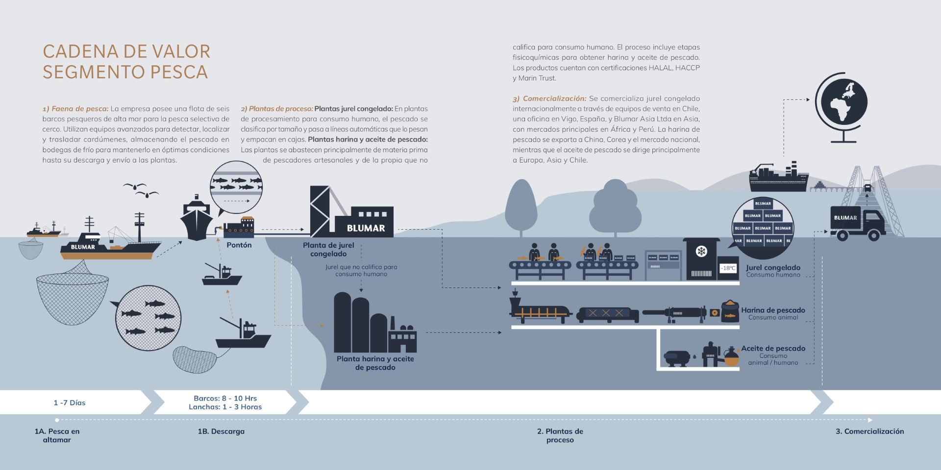 Blumar es una compañía integrada verticalmente desde las capturas a la venta de sus productos.